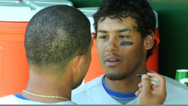 Dodgers second baseman Orlando Hudson is joined by Juan Pierre and Mariners outfielder Ken Griffey Jr. at Orlando’s “Around the Mound Tour” in LA. [Watch it Now]